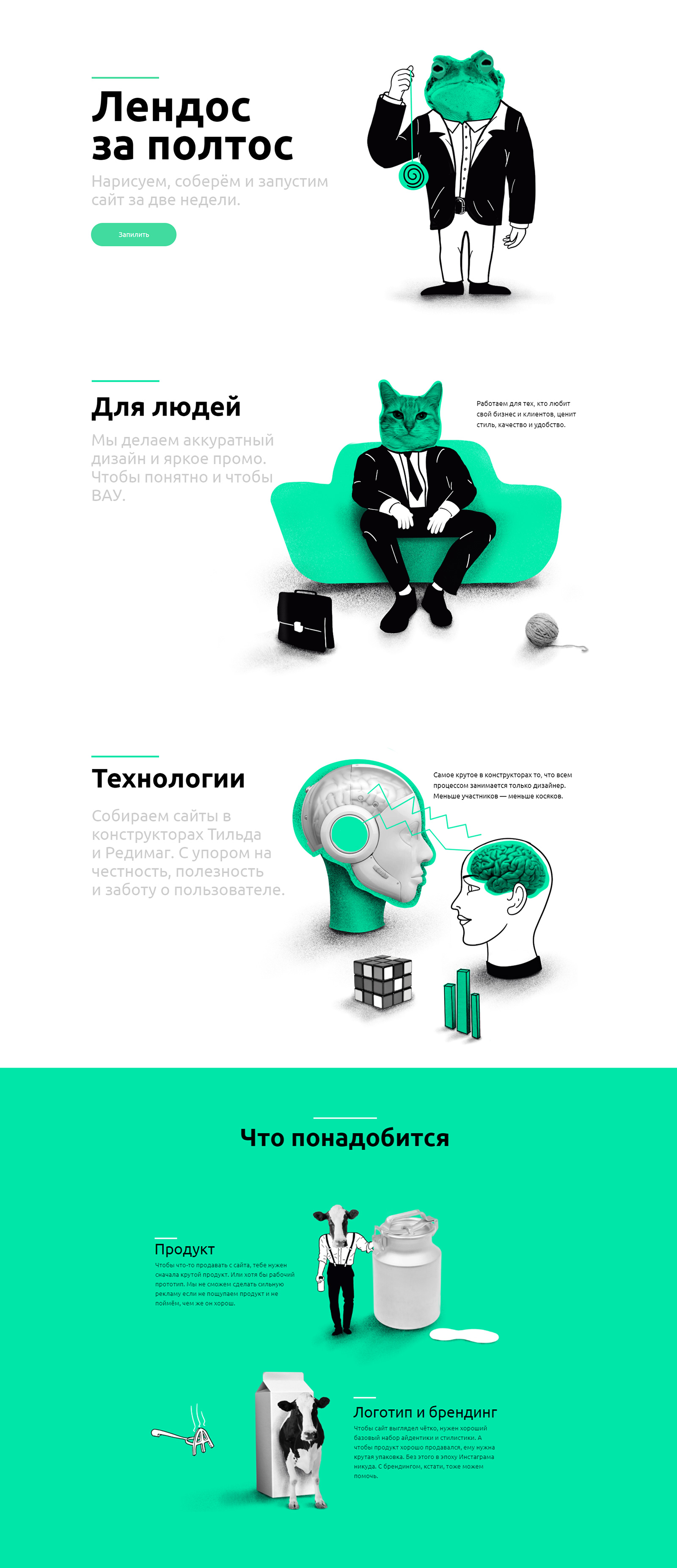 Когда придумали лендос, мы уже больше шести лет занимались разработкой сайтов. Мы начинали в провинции и со временем поняли, что переросли свой город — по уровню работ и по ценам. Задача — ворваться в Москву с помпой.